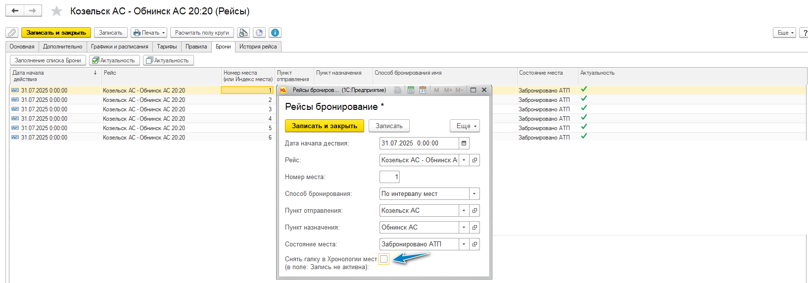 Использовать только в том случае, если отметка установлена случайно в новом списке броней, который создали сейчас и не было никаких продаж/поездок. Редактировать старые списки, по которым были поездки нельзя.