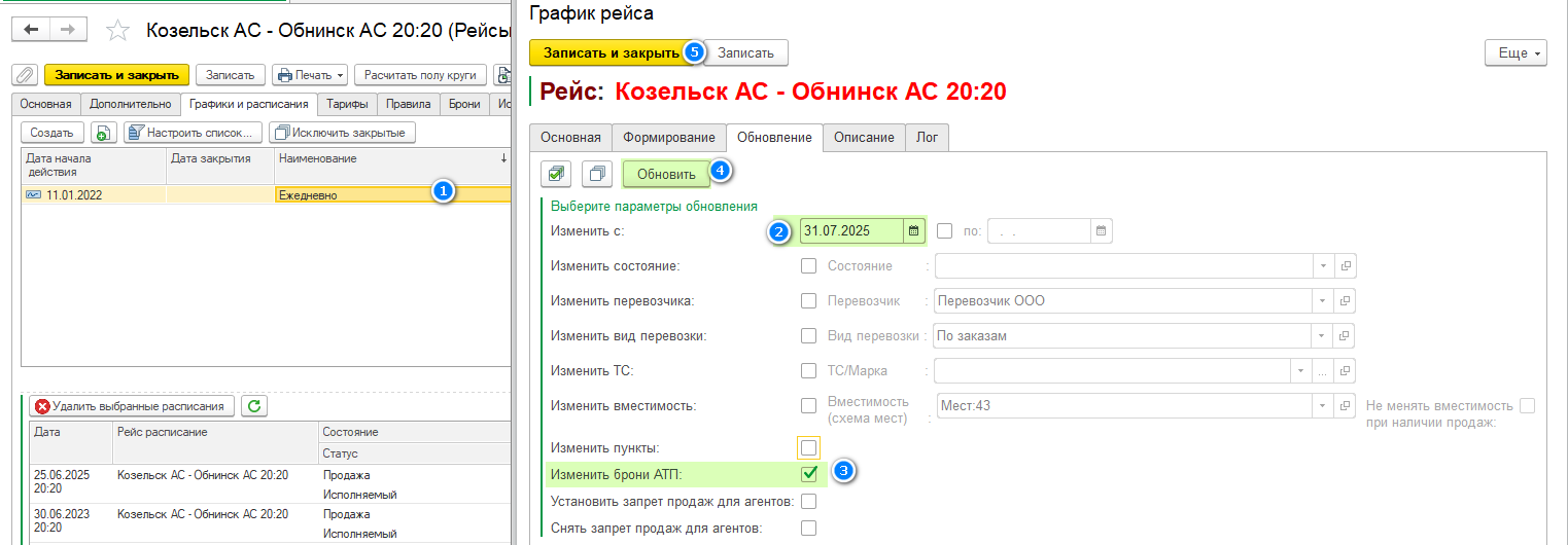 Установите галку "Изменить брони АТП" и дату с которой произойдет обновление рейс-расписаний.