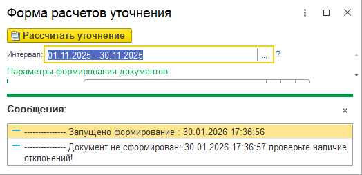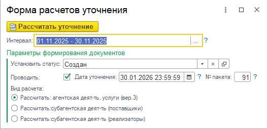 Нажмите кнопку "Рассчитать уточнение". Будет создан и открыт корректирующий документ.