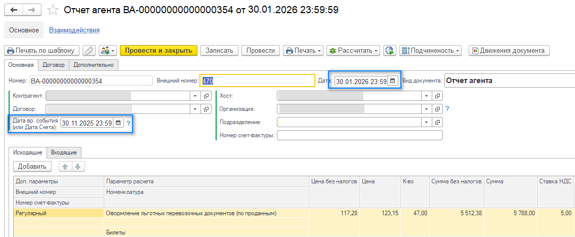 В конце отчетного периода может оказаться, что после него были произведены возвраты, учтены неявки. Эти новые сведения влияют на выручку перевозчика и размер вознаграждения агента.