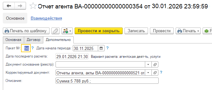 Меню Агентская деятельность - Документы - Отчеты агента, акты