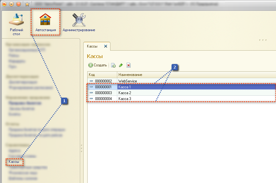 2) Выбираем ту кассу, к которой хотим подключить кассовое оборудование.