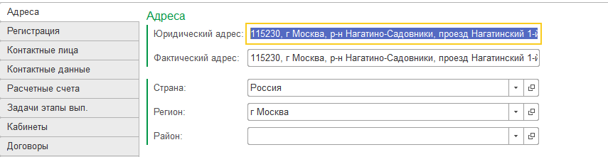 Вкладка Адрес заполнится автоматически.