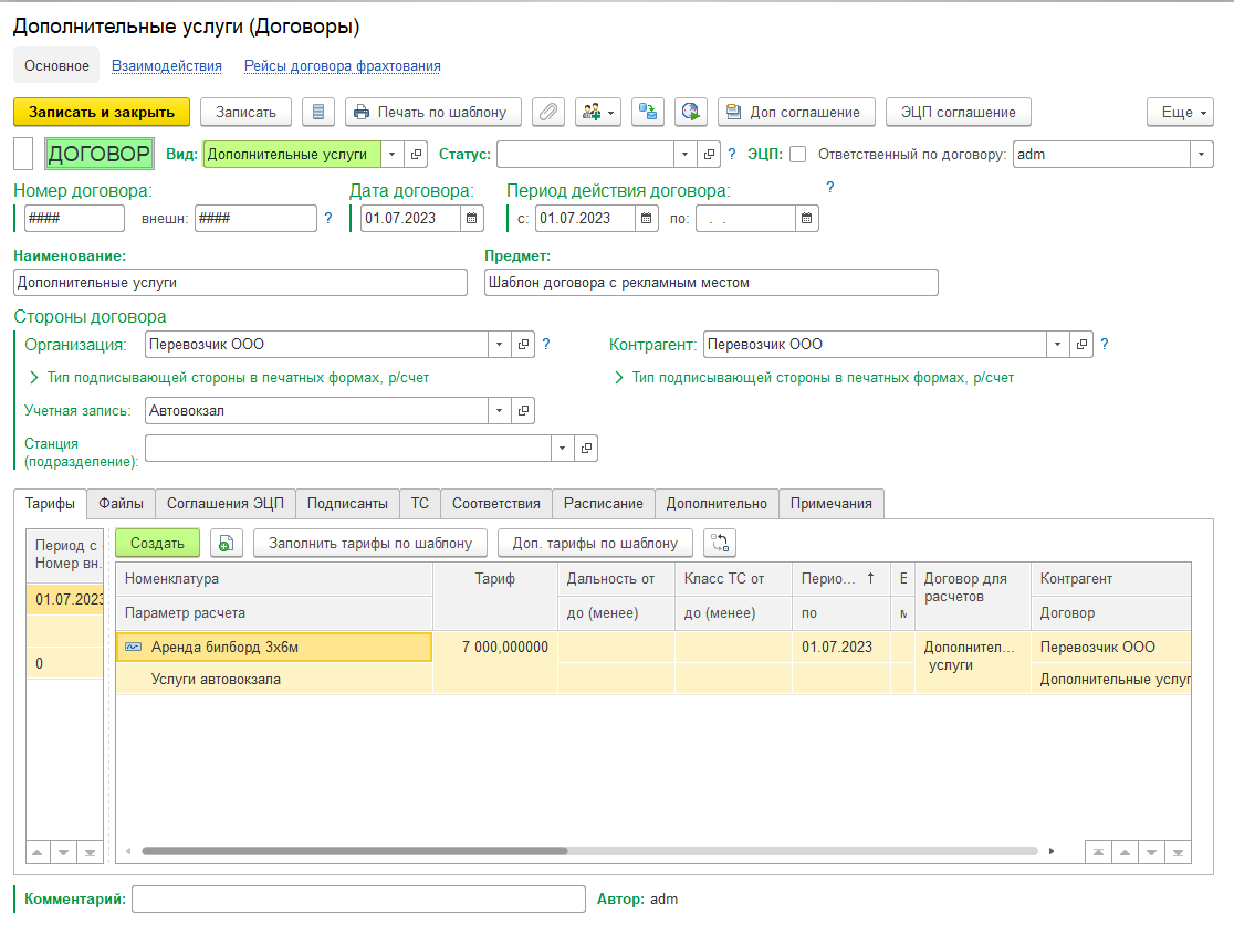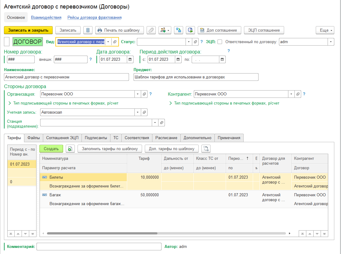 Заполните тарифы для данного шаблона (инструкция тариф на услуги) и нажмите кнопку "Записать и закрыть".